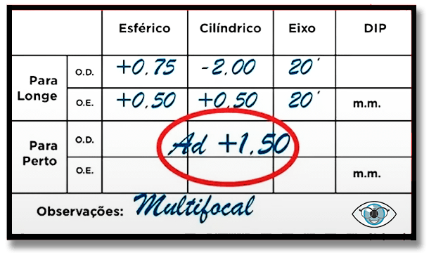 No exemplo da receita, foi colocado uma observação que as lentes devem ser Multifocais com adição de + 1,50, caso sua receita seja parecida você vai precisar de lentesmultifocais.